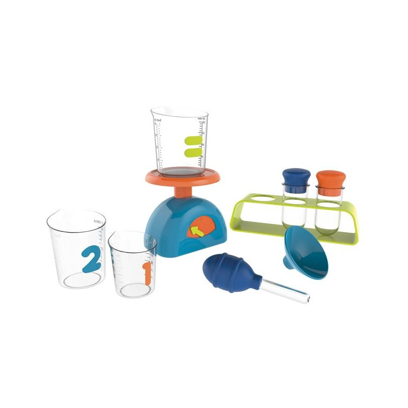 S pomůckami navrženými pro malé ruce – včetně váhy, kádinek, zkumavek se stojánkem, pipety a trychtýře – se vaše dítě snadno ponoří do světa experimentů.